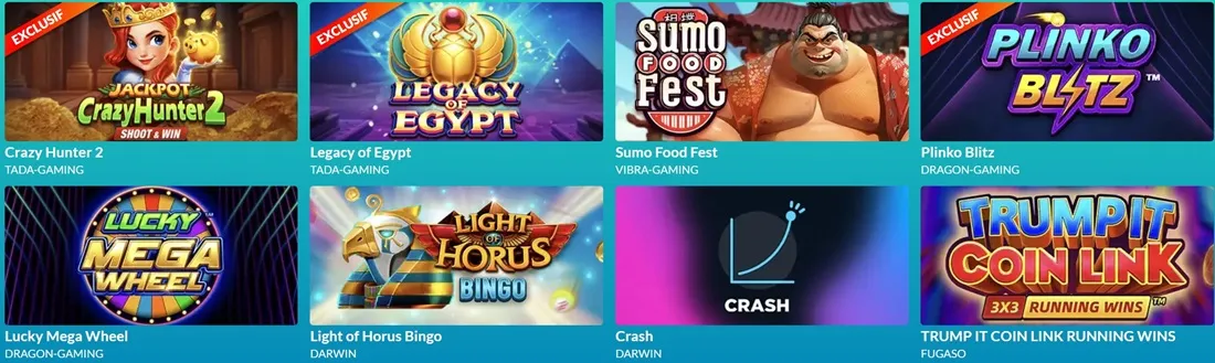 | Jeux disponibles | 1500+ (machines à sous, jeux de table, live, etc.) |