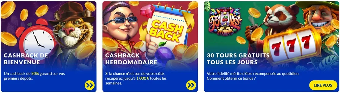 | Bonus de bienvenue | 100% jusqu'à 1000€ + 100 tours gratuits |